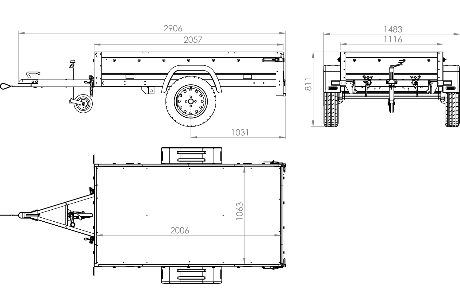 Grâce aux ridelles solides d’une hauteur de 30 cm et un plancher 200 x 106 cm, le remorque avec bâche est idéale pour un usage multiple. Essieu simple fabriqué par AL-KO ou KNOTT 750 kg assure des conditions optimales et permet de transporter des charges lourdes. Remorque livrée à domicile avec tous les documents nécessaires!