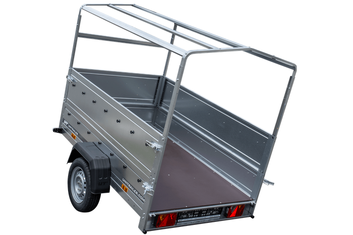 La remorque benne avec châssis avec bâche, côtés BIS et roue de support Garden Trailer 201 KIPP est notre dernier modèle dans l'offre commerciale. Grâce à sa grande surface de transport de 200 cm x 125 cm, il permettra le transport de la plupart des objets qui ne rentreraient normalement pas dans une voiture de tourisme. GVM jusqu'à 750 kg permet à tout conducteur titulaire d'un permis de conduire de catégorie B de le connecter à l'attelage de son véhicule. De plus, le cadre et les côtés BIS offrent une protection supplémentaire aux objets transportés. L'utilisation d'un essieu de torsion moderne AL-KO ou KNOTT dans la remorque signifie qu'aucune bosse ou trou sur la route ne constitue un obstacle, même lors du déplacement avec une surface de transport déchargée. Assurez un transport confortable et sûr des marchandises grâce à la remorque benne Garden Trailer 201.