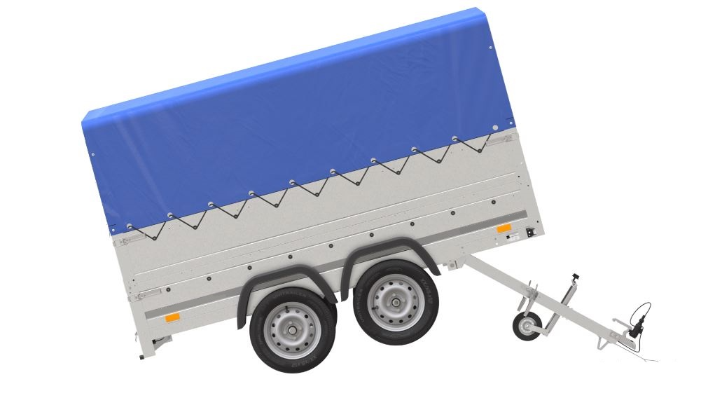 roues placées sur les côtés de la surface de transport résultant en un centre de gravité plus bas, une meilleure maniabilité et aucun rebond de la remorque même lors de la conduite sans chargement